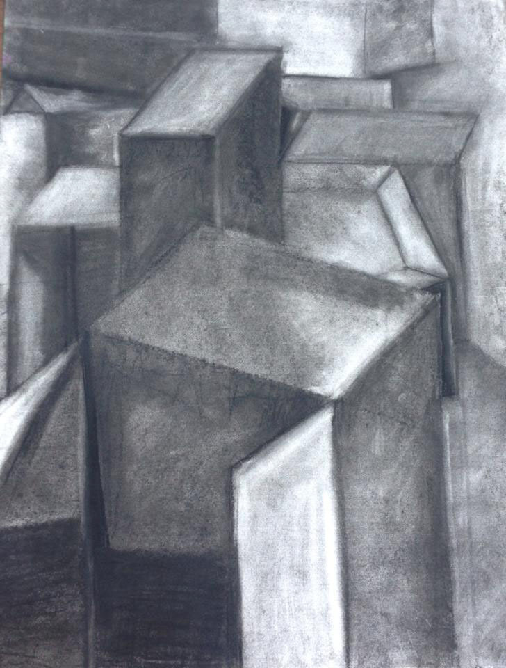 Blocks, still life, charcoal