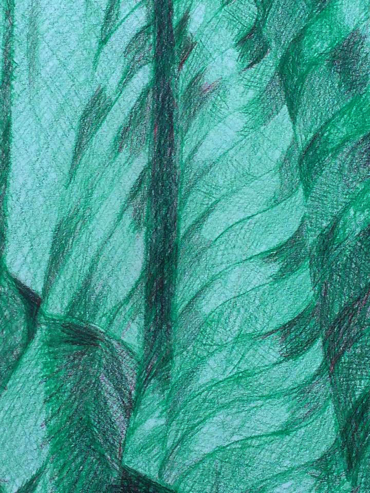 Drapes, still life, colour pencil